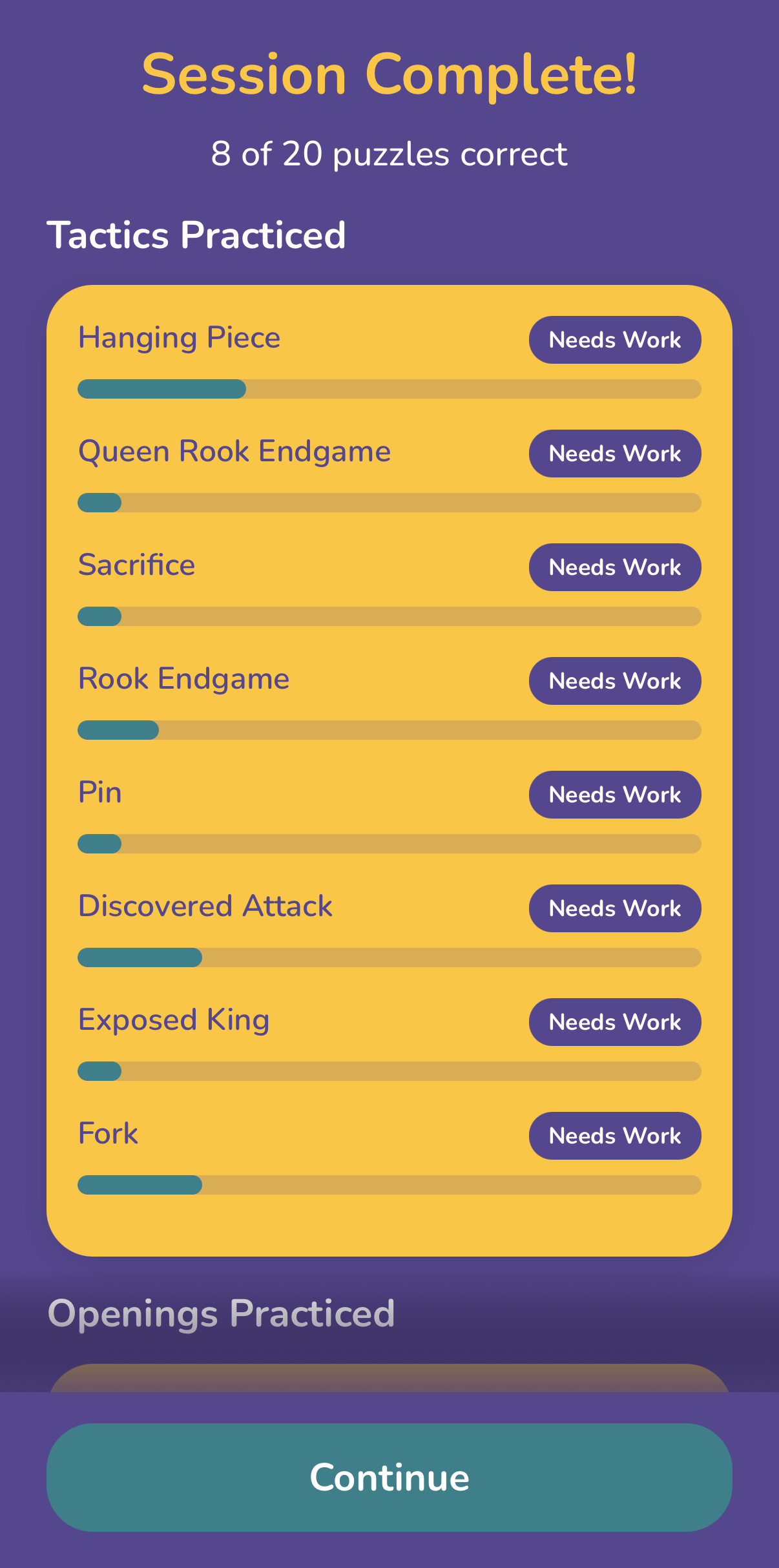 Identify which openings you struggle with and get targeted practice to strengthen those weaknesses.