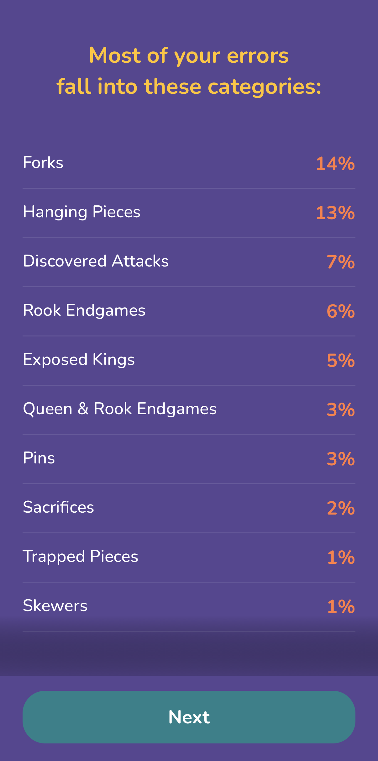 Discover what types of mistakes you make most frequently and which chess themes give you trouble.