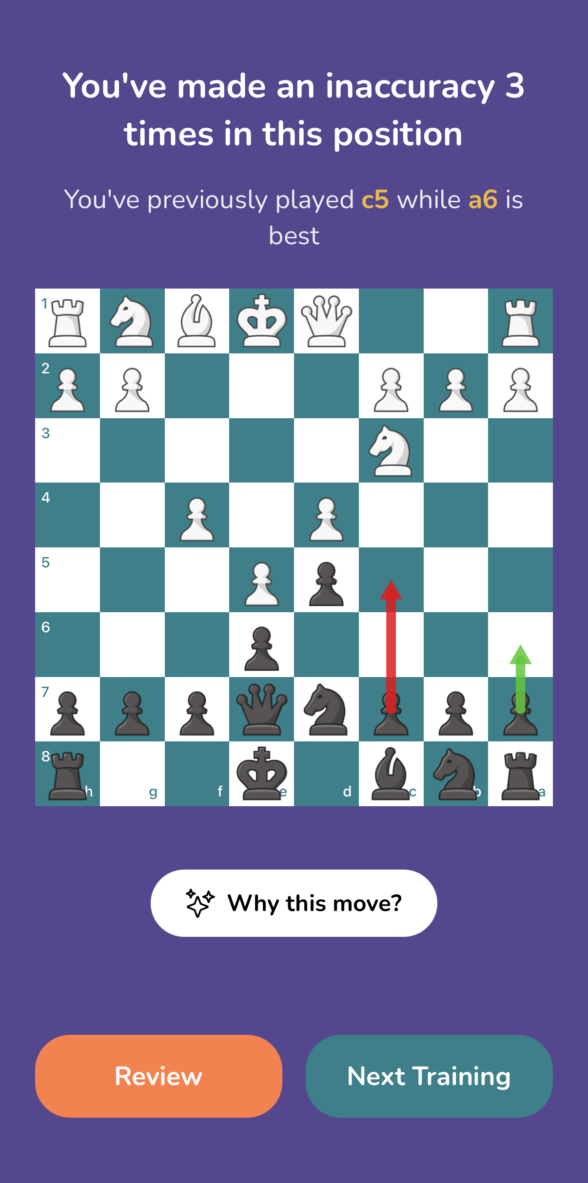 Confused about a move? Step through any training and receive explanations using the 'Why This Move?' button.